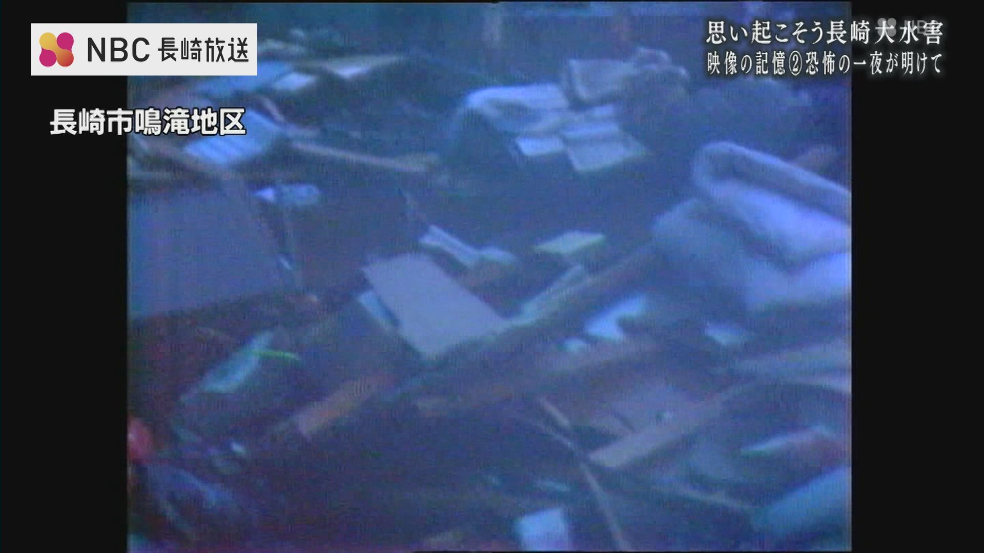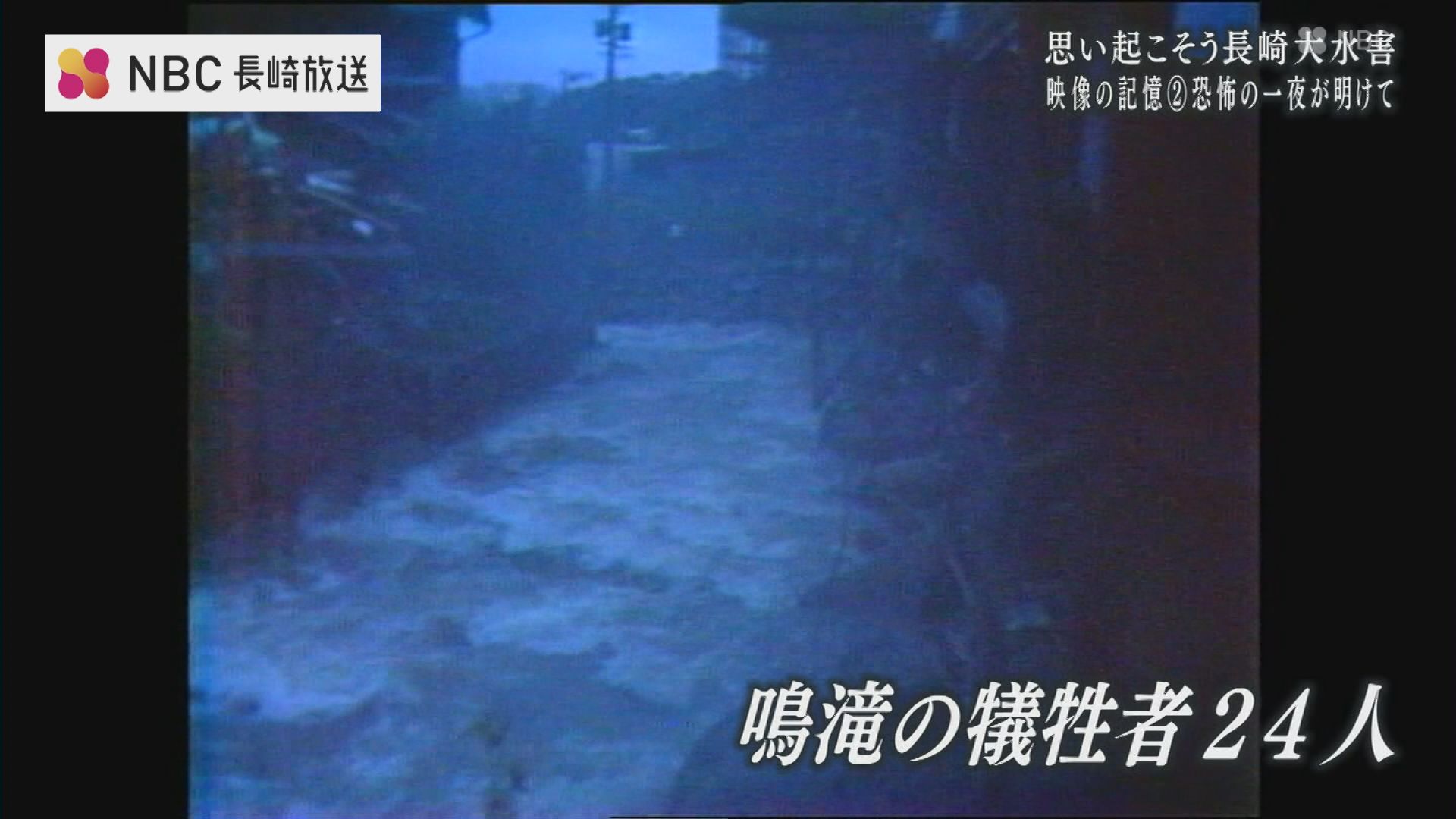 長崎市鳴滝地区土石流で斜面の住宅が押し流され、この地区だけで死者・行方不明者24人の被害が出ました。