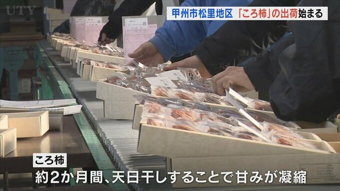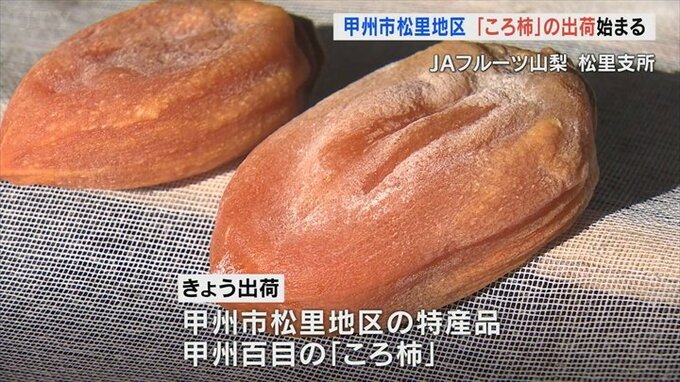 甲州市松里地区の特産品、ころ柿の出荷が始まりました。