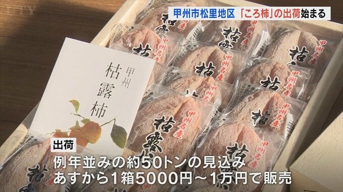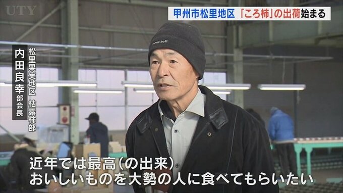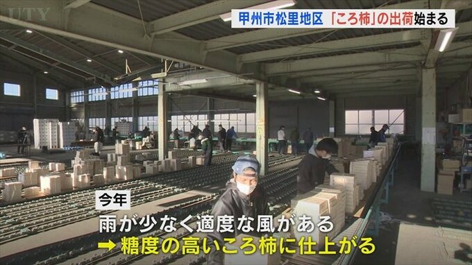 出荷が始まったのは年末年始の贈答品として人気が高い甲州市の松里地区の甲州百目の「ころ柿」で、けさ共選所で検品作業が行われました。