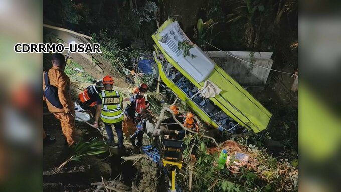フィリピンで5日、走行中の旅客バスが谷に転落し、少なくとも17人が死亡しました。ブレーキの不具合が原因とみられています。AP通信によりますと、フィリピン中部のパナイ島で5日、下り坂を走行中の旅客バスがコン…