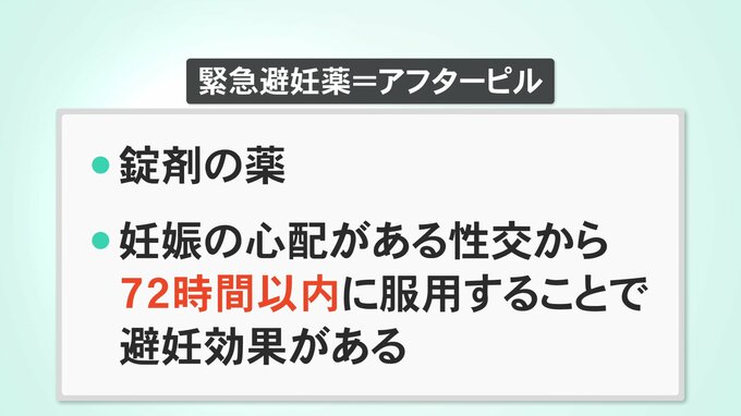 まず、「緊急避妊薬」についてです。緊急避妊薬=アフターピルとは、錠剤の薬で、妊娠の心配がある性行為から72時間以内に女性が服用することで避妊効果があるとされるものです。