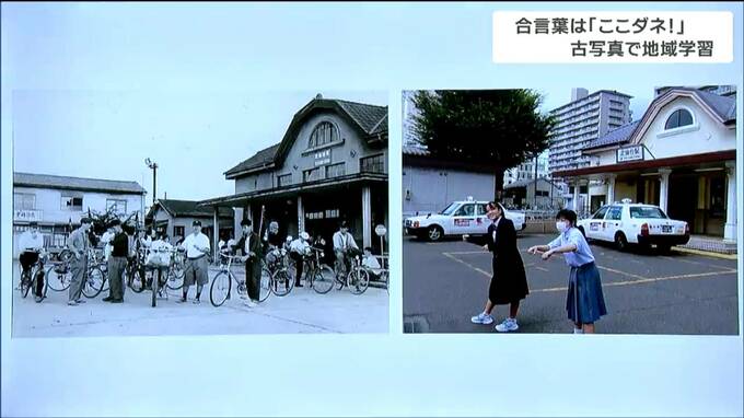 地域の歴史を学んでもらおうと企画されたこの取り組み。生徒たちは10月から11月にかけて学校周辺で、過去と現在の写真を重ね合わせる「同ポジ」の写真撮影を行いました。