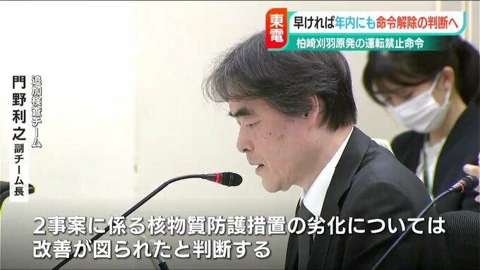 【追加検査チーム 門野利之 副チーム長】「東京電力の改善措置活動の確認が全て終了し、2事案にかかる核物質防護の劣化については改善が図られたと判断する」