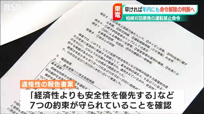 さらに、原発を運転する東電の「適格性」について再確認をした報告書案も公表。「経済性よりも安全性を優先する」など『7つの約束』が守られていることを確認したとしています。