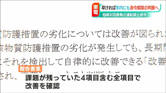 事実上の運転禁止命令が出されている東京電力柏崎刈羽原発について6日、原子力規制委員会は命令の解除について、現地調査などを経て最終判断をすることを決めました。早ければ年内にも解除の判断となります。
