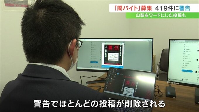 これを受けて山梨県警は今年10月から「闇バイト」「裏バイト」「高額報酬の支払い」など犯罪実行者の募集が疑われる旧ツイッター「X」での投稿に対する警告を始めました。