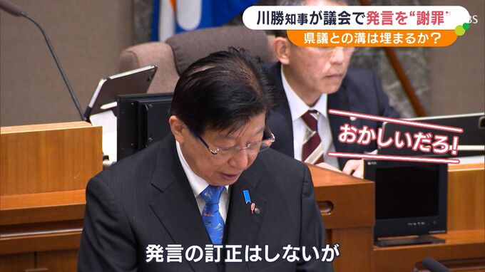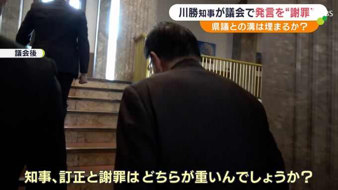 議場で知事が訂正しないと明言したことが関係悪化に拍車をかけました。