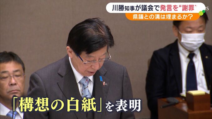 知事は県議会が求めた「発言の訂正」ではなく謝罪した上で「構想の白紙」を表明しました。