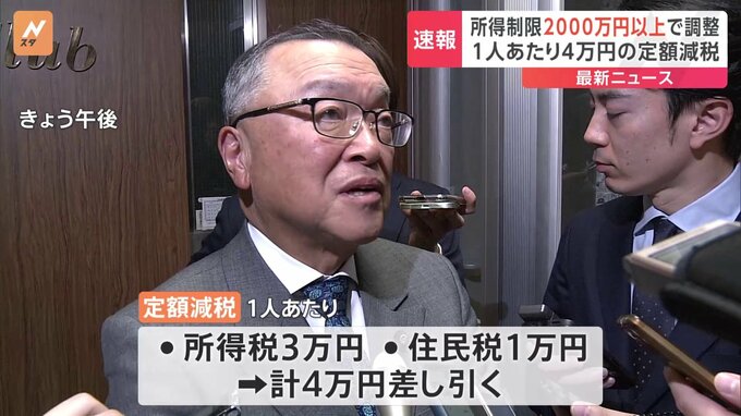 自民党の税制調査会は非公式の幹部会合を開き、所得税などを1人あたり4万円差し引く定額減税について所得制限を設け、年収2000万円以上の人を対象から除外する方針を確認しました。関係者によりますと、自民党の税…