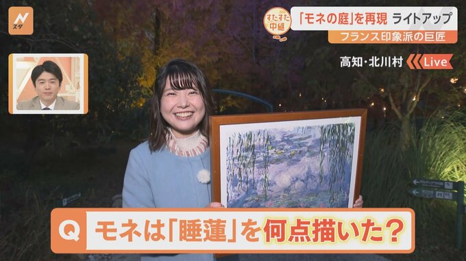「歩いて発見!すたすた中継」。きょうは印象派の巨匠・モネの庭を再現した庭園から、テレビ高知の松岡葵アナウンサーがお伝えします。