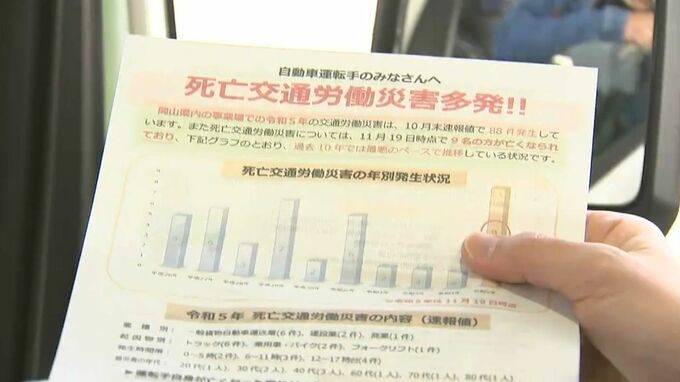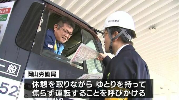 岡山県内で労働災害としての交通死亡事故が過去10年間で最多となっていることから、長時間運転になりがちなトラックドライバーに向けて、岡山労働局が事故防止を呼びかけました。