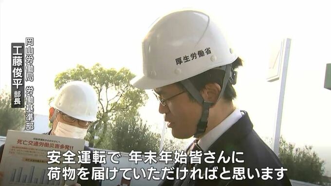 (岡山労働局 労働基準部 工藤俊平部長)「安全運転で、年末年始皆さんに荷物を届けていただければなと思います。どうぞよろしくお願いいたします」