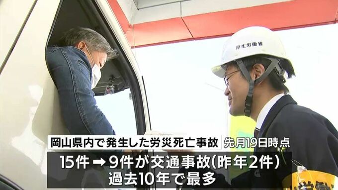 今年に入って岡山県内では、労働災害としての死亡事故が先月19日時点で15件発生していて、このうち9件は交通事故です。
