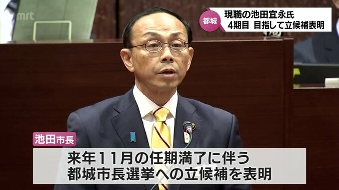 来年11月の任期満了に伴う宮崎県都城市長選挙に、現職の池田宜永氏が立候補することを表明しました。(都城市 池田宜永市長)「今後も私が先頭に立って、市民の皆様とともに本気で挑戦し、より良いふるさと都城を…