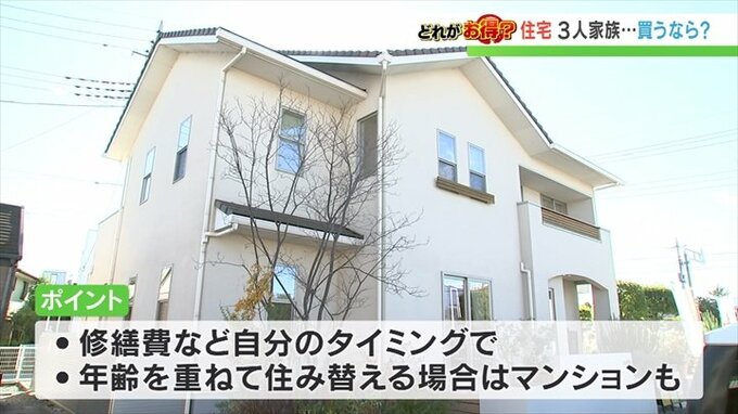この家族、まだ子供さんも小さく、そして子育てとかですね、教育といった未来にかかるお金がまだまだ不透明な部分がありますよね。ですので、家の修繕などは自分のタイミングで使い道を決めることができる戸建てがおすすめになります。