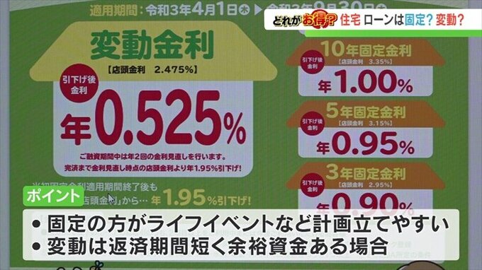 一方でですね、変動金利は返済期間が短く、金利上昇時にですね対応ができる余裕資金がある方におすすめとなっています。