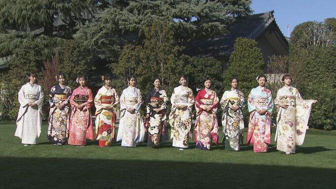 俳優の小芝風花さん、髙橋ひかるさん、本田望結さんらが、所属するオスカープロモーションの2024年新春晴れ着撮影会に登場しました。