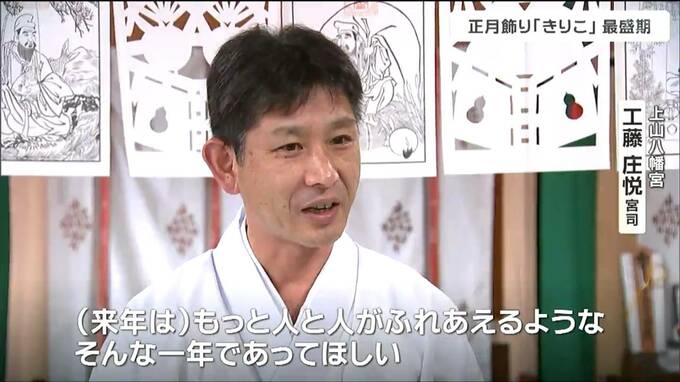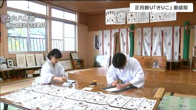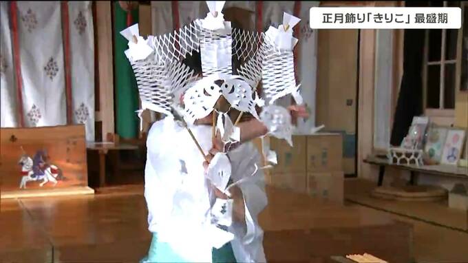 宮城県南三陸町の神社では正月に神棚に飾る紙細工「きりこ」作りが最盛期を迎えています。