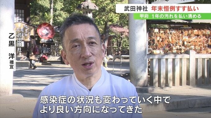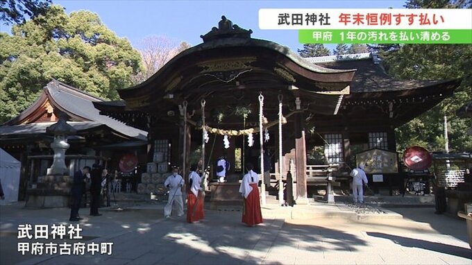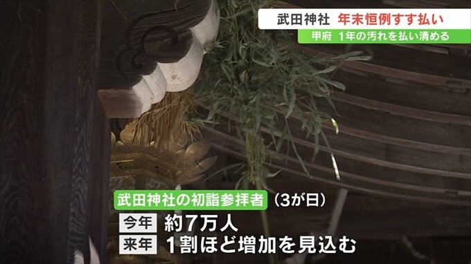 甲府市の武田神社で1年の汚れを払い清める年末恒例のすす払いが行われました。