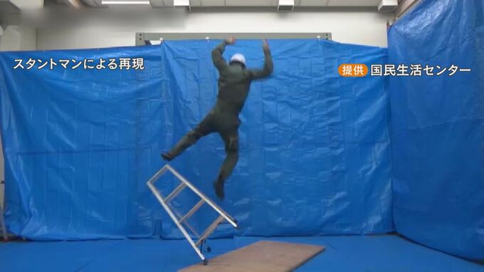 ガタつきがあっても脚立や、はしごにのぼることはできますが、作業している人の重心が移動したり、脚立にまたがって扉を開けようとした際にバランスを崩して転落する恐れが。