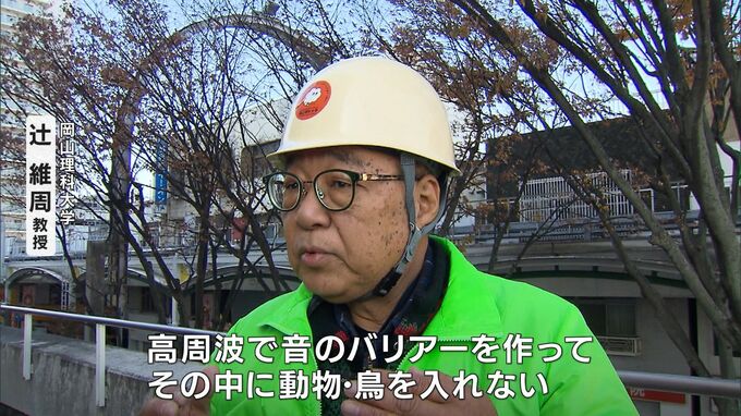 (岡山理科大学 辻維周教授)「一発で効くということはほとんど無くて、特にムクドリやハトのような少し小さめで群れをなす鳥というのは、1週間から2週間して少しずつ数が減っていなくなると」