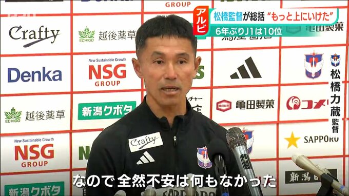 6年ぶりのJ1を10位で終えたアルビレックス新潟の松橋力蔵監督が7日に、会見を開き「個人が成長した年だったが、もっと上の順位に行けた」と総括しました。