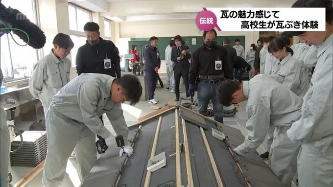 日本伝統の瓦屋根の魅力を感じてもらおうと、宮崎市の高校で瓦ぶきを体験する講座が開かれました。宮崎工業高校で行われた瓦ぶきの体験講座。建築家の1年生37人が参加しました。(三浦功将記者)「地震や台風に備…