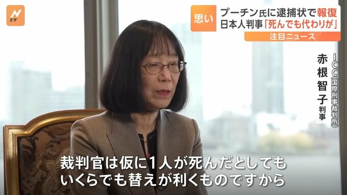 赤根判事は、「証拠に基づき法律的な手続きで責任を追及していくことが、戦争犯罪の抑止につながる」と訴えています。