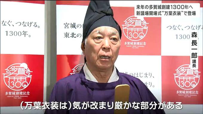 宮城県の多賀城市役所庁舎の増築に伴い、新しくなった議場の開場式が7日行われました。来年、多賀城創建1300年を迎えることから、出席した議員らは普段と違った装いで議場に姿を現しました。