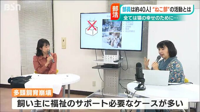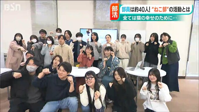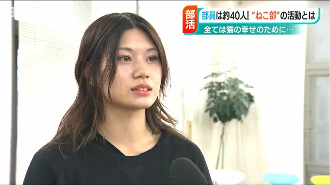 2021年に発足したサークル団体『ねこ部』は、現在部員およそ40人で保護猫カフェを手伝ったり、猫と入居できる高齢者施設のチラシを作ったりしています。