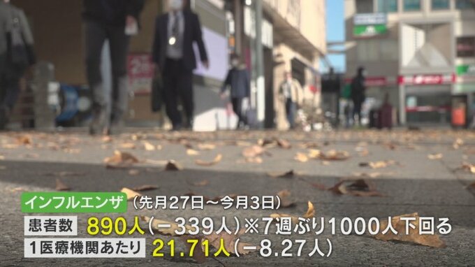 12月3日までの1週間に県内41の定点医療機関から報告があった患者の数は890人で、前の週より339人減り、7週ぶりに1000人を下回りました。