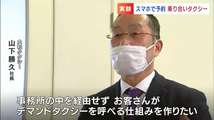 (大和タクシー 山下勝久社長)「デマンドタクシーが普通のタクシーと同じように運用ができて、事務所の中を経由しなくて、お客さんが直接デマンドタクシーを呼べる仕組みを作りたいと思ってます」