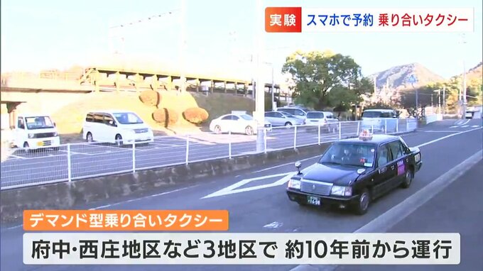 これまでは電話予約のみでしたが、今月(12月)から府中・西庄地区ではタクシー会社が国からの補助を受け、スマートフォンのアプリを使っても予約ができる実証実験が始まっています。