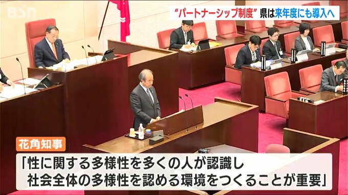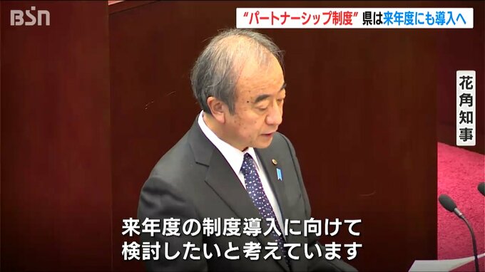 戸籍上同性のカップルを自治体が夫婦と同等の関係だと認める「パートナーシップ制度」について、8日開かれた新潟県議会で花角知事は来年度にも導入する方針を示しました。