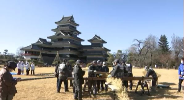 松本城で、年末恒例のしめ縄作りが行われました。国宝・松本城で行われたのは、新年を迎えるための大きなしめ縄づくり。ふだん庭園の管理を担うシルバー人材センターの10人ほどが、かけ声をかけながら水で濡らした…