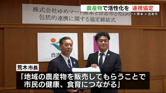 荒木市長は「地域の農産物を積極的に販売してもらうことで市民の健康、食育につながる」とゆめマート熊本との協定に期待を寄せました。