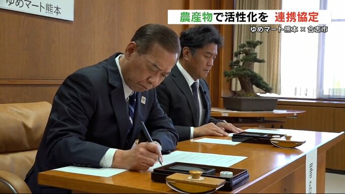 協定は、合志市とゆめマート熊本が農産物の地産地消を通した地域の活性化や食育に関する5つの項目で協力するというものです。