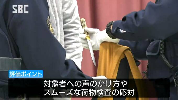 対象者への声のかけ方や、スムーズな荷物検査の応対が評価のポイントです。