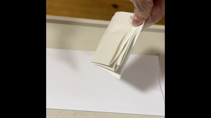 折りたたみすぎて紙がぶ厚くなったせいか、なかなか入らず、無理やり押し込んでそのまま立ち去っていきました。