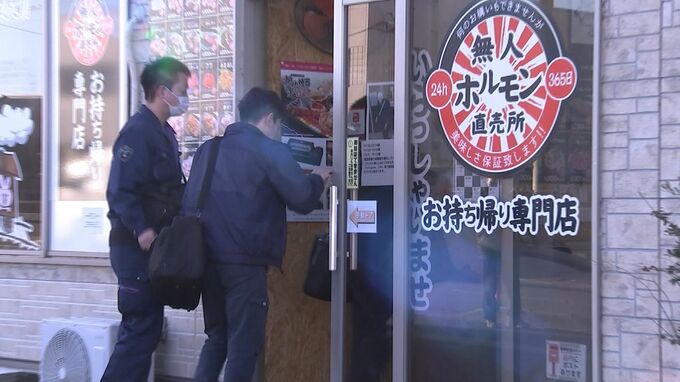 「警察の捜査員が店に入っていきます。なんときのうもまた男が肉を盗んでいったということです」