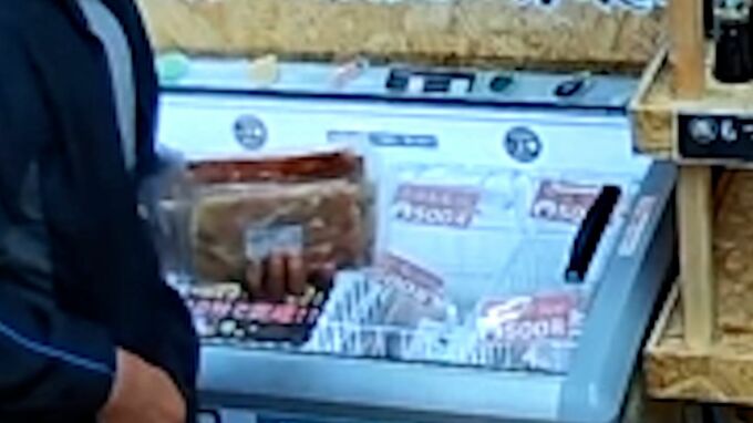 「肉を手にした男がこちらの料金箱に入れていたのは、金ではなくこのような『紙を何枚も折りたたんだもの』...金を払わずに肉を盗んでいったのです」