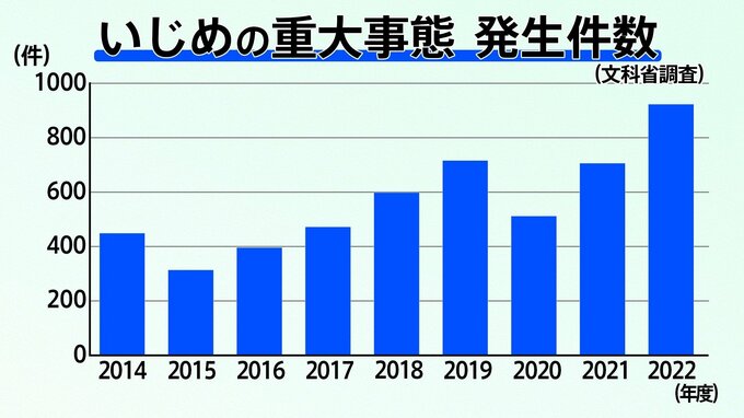 文科省によると2022年度、いじめの重大事態件数は923件で過去最多を更新した。重大事態とは、子どもの生命や心身・財産に重大な被害が生じたり、長期の欠席を余儀なくされたりした疑いのあるケースだが、この国では毎日2.5件のペースで新たに発覚している。