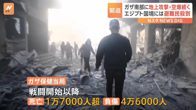 イスラエル軍はパレスチナ自治区ガザ南部に対し、地上からの攻撃と空爆を続けています。エジプトとの境界に位置する南部ラファには、多くの避難民が殺到しています。イスラム組織ハマスとの戦闘開始から2か月とな…
