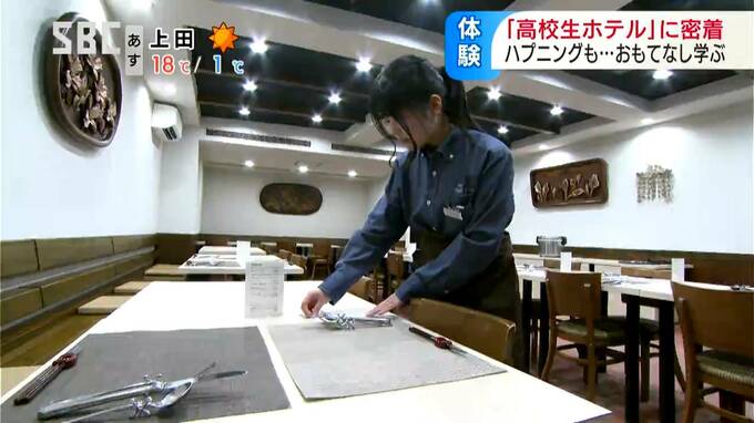 観光を学ぶ長野県白馬村の高校生たちがホテルの業務を体験。その名も「高校生ホテル」に密着しました。小谷村の栂池(つがいけ)高原にあるホテル。この日、おもてなしをするのは・・・「いらっしゃいませ!」長野…