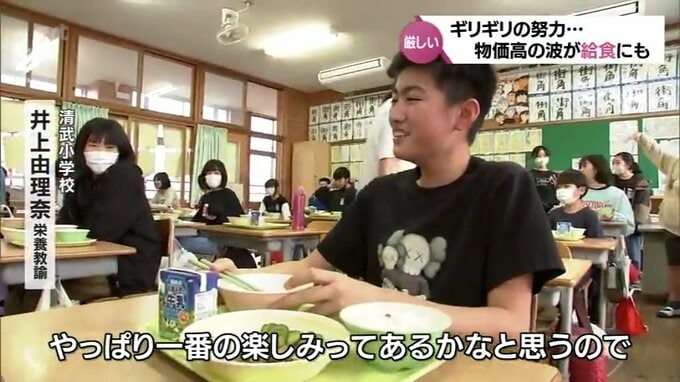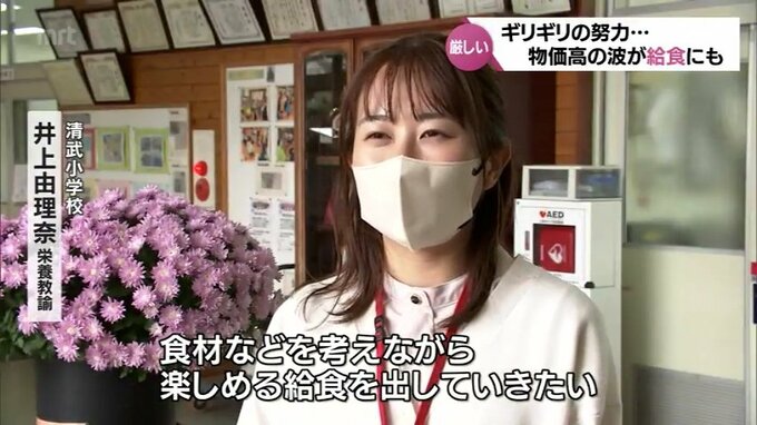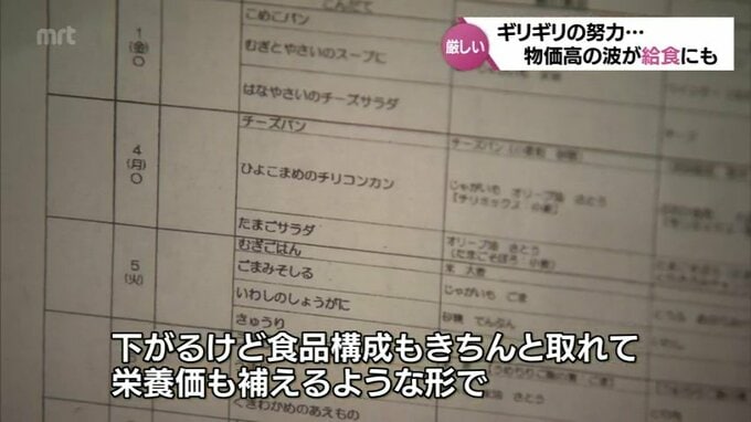 「例えば、ウインナーとかハムとかの加工品だと少し高くなるので、そういったものをとり肉や豚肉に変えて、予算が少しでも下がるように、下がるけど、食品構成もきちんと取れて、栄養価も補えるような形で、献立の方は工夫して立てています」