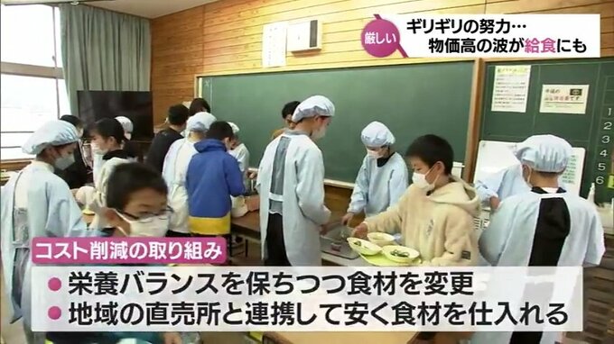 栄養バランスを保ちつつ、食材を変更したり、地域の直売所と連携して安く食材を仕入れたりと、工夫を凝らしてコストを削減している。