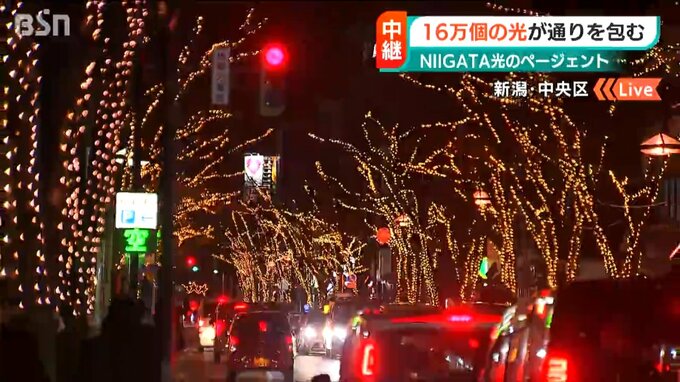 新潟市中央区の「けやき通り」では、恒例となった新潟の“冬の風物詩”『NIIGATA光のページェント』が今年も8日からはじまりました。