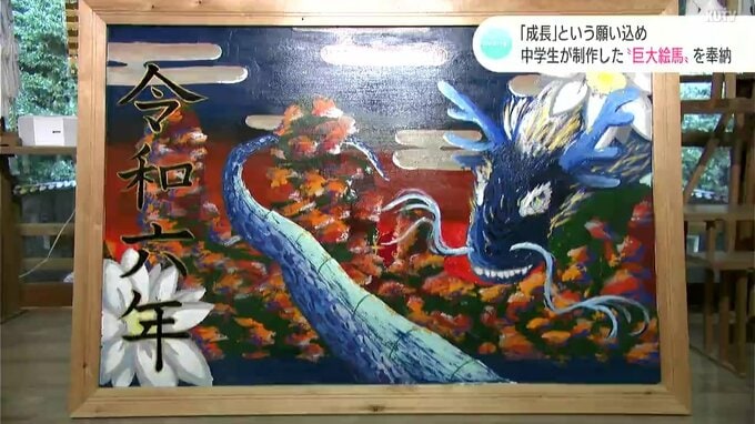 中学生たちが制作した巨大絵馬が高知市の神社に奉納されました。6回目の奉納で、今年は「成長」という願いが込められています。来年の干支、「辰」にちなんで大きく描かれた龍の絵。この絵馬は三里中学校の美術部…