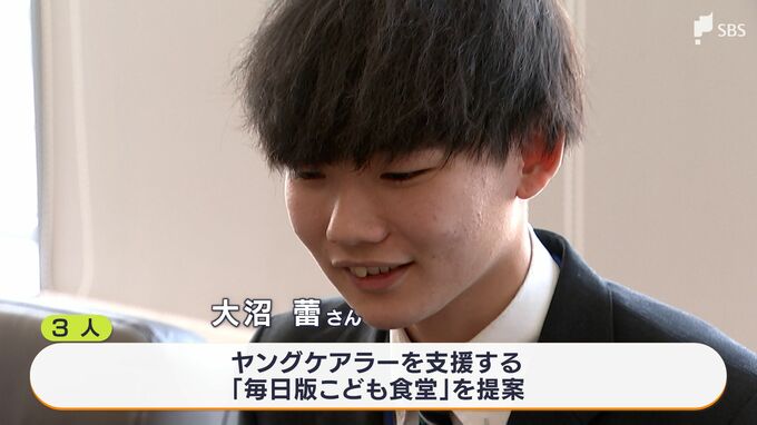 3人は大人に代わって日常的に家事や家族の世話をする「ヤングケアラー」を支援する「毎日版こども食堂」を提案。