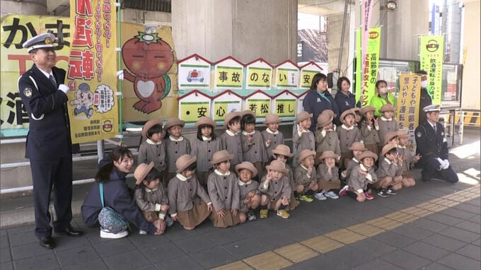 事故が増える傾向にある年末年始に向けて、北九州市では絵馬の形をした交通安全を呼びかける看板が設置されました。北九州市若松区で8日、浜町幼稚園の園児たちが絵馬の形をした看板に交通安全の標語を貼り、…